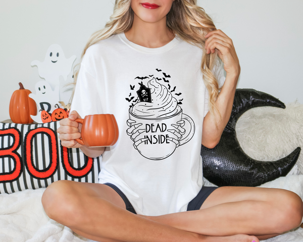 Dead Inside Skellie Hands Bats Mug Black Outline 114665 DTF transfer