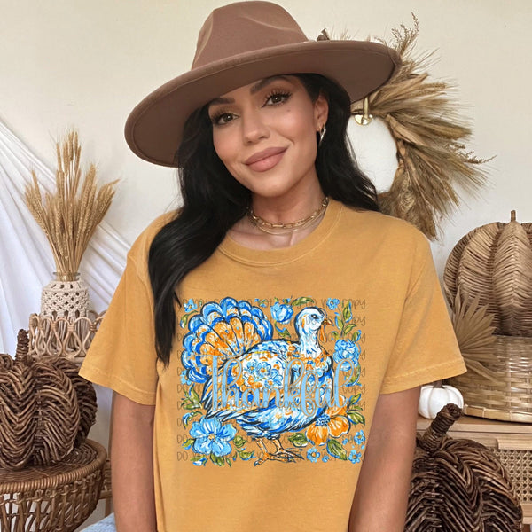 Blue and Orange thankful turkey (SSD) DTF transfer