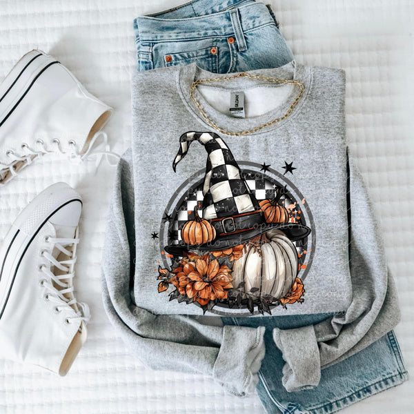 Checker Witch Hat and pumpkins (MMD) DTF transfer