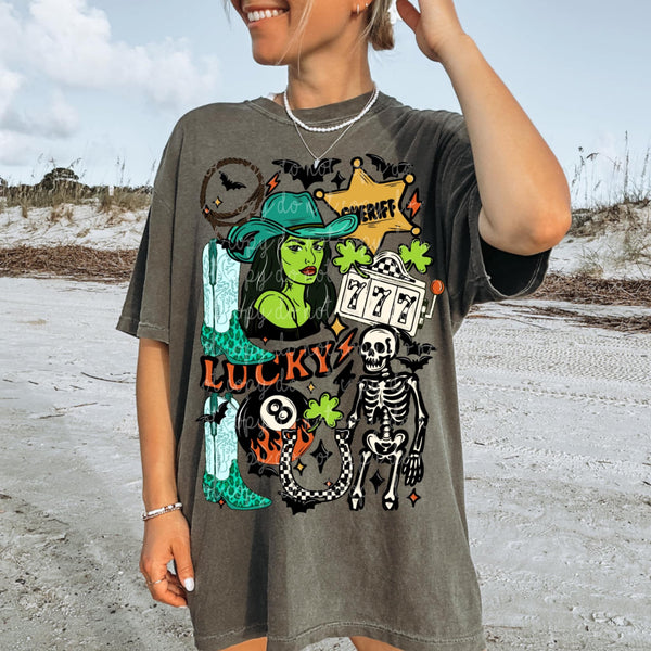 Lucky Collage Witch and skeleton (MMD) DTF transfer