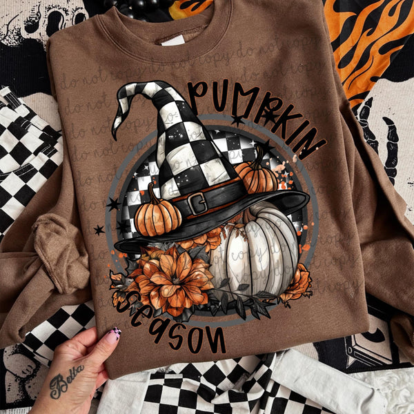 Pumpkin Season Checker Witch Hat (MMD) DTF transfer