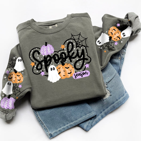Spooky Season ghost, purple and orange pumpkins (sleeve) CSC DTF transfer