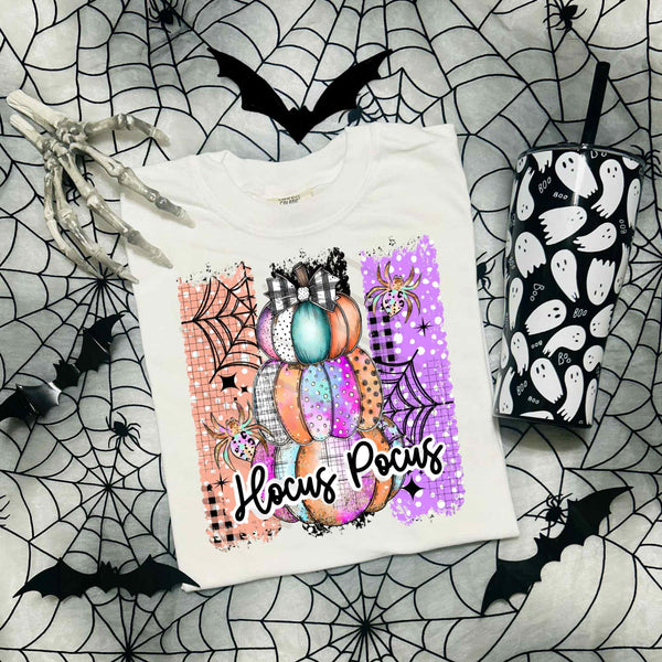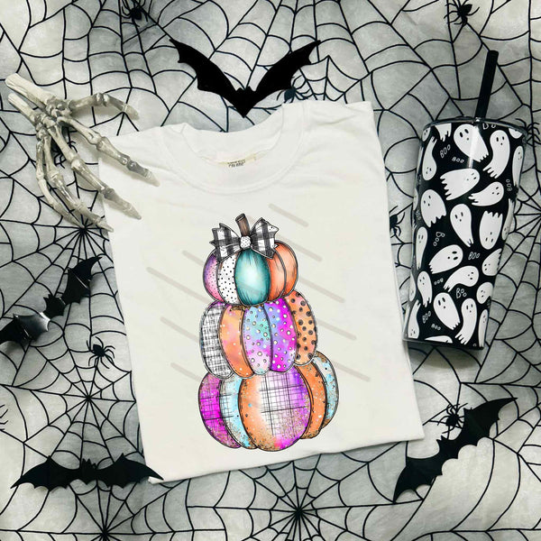 Hocus Pocus Stacked Pumpkins with plaid bow DTF transfer
