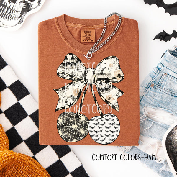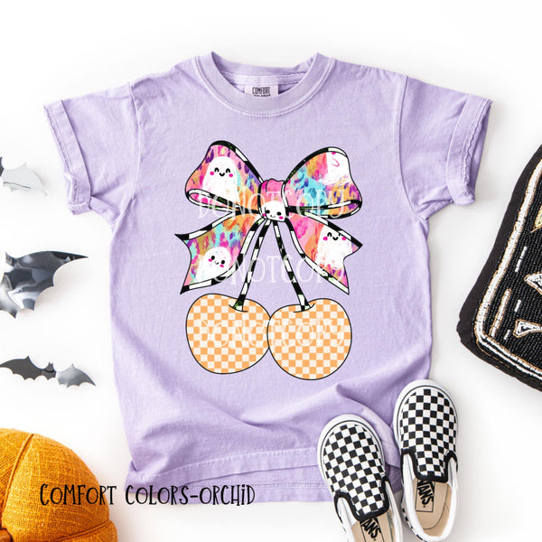 Orange Checker Cherries with Ghost Bow (csg) DTF transfer