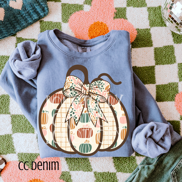 Tanned checkered pumpkin with bow and small pumpkin font CSG DTF transfer