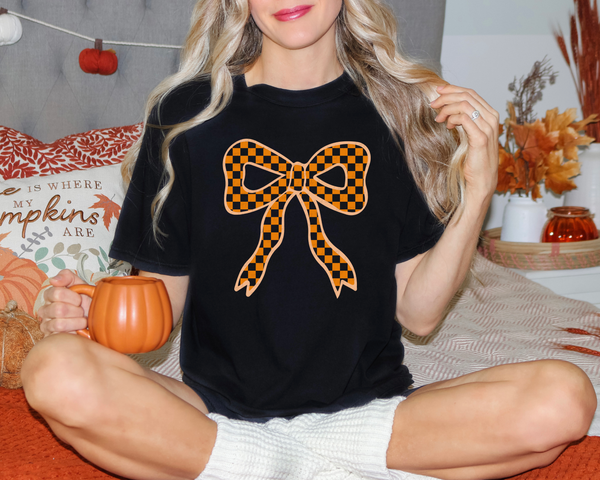 Checkered Orange Bow 108933 DTF transfer