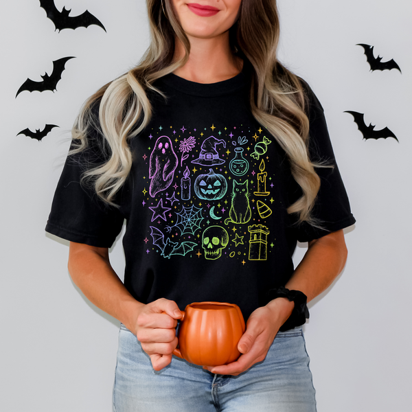 Neon Halloween Doodle Collage 108915 DTF transfer