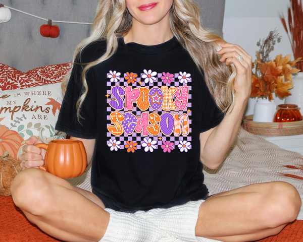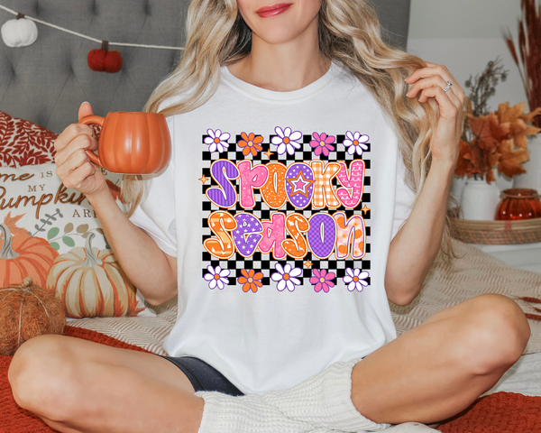 Spooky Season Black Checkered Background 108930 DTF transfer