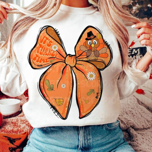 Its Turkey Time Bow DTF transfer
