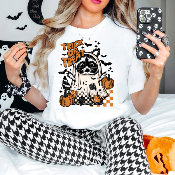 Trick Or Treat Ghost Racoon CSC DTF transfer