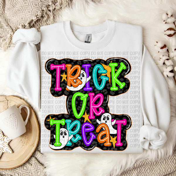 Trick or Treat Neon with ghosts (VP) DTF transfer