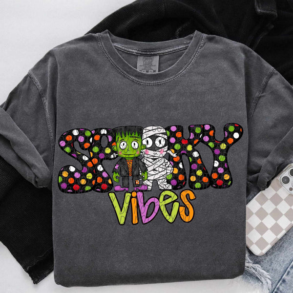 Spooky vibes polka dot frank and mummy (City) DTF transfer