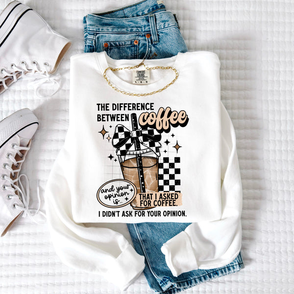 Coffee and your opinion with checker bow CSC DTF transfer