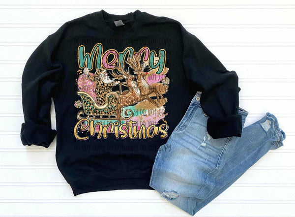 Merry Christmas Santa and Reindeer SSD DTF transfer
