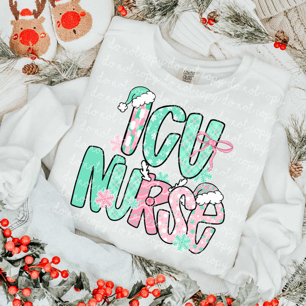 ICU Nurse Mint and Pink Christmas letters DTF transfer