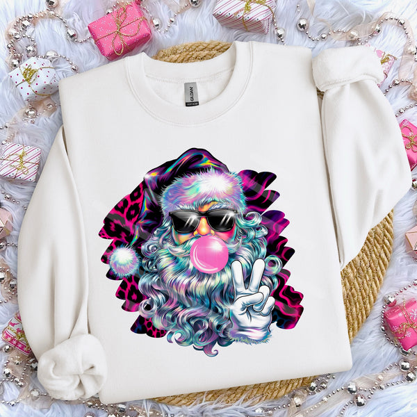 Peace Santa Bubblegum pink cheetah background (WNDD) 114205 DTF transfer