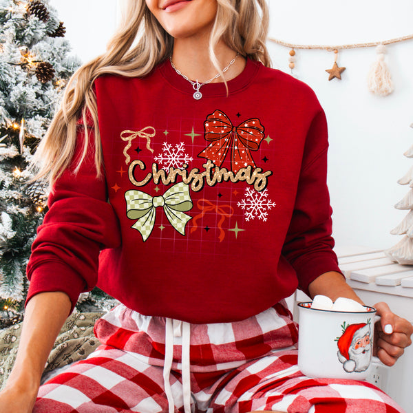 Christmas faux glitter with red and green bows (csc) DTF transfer