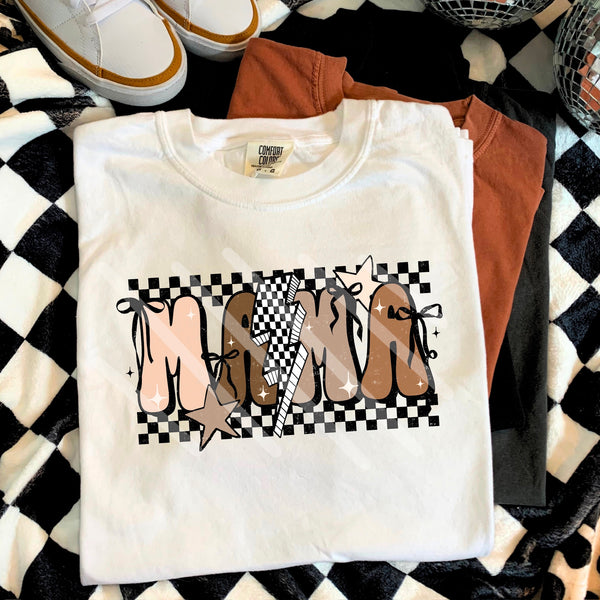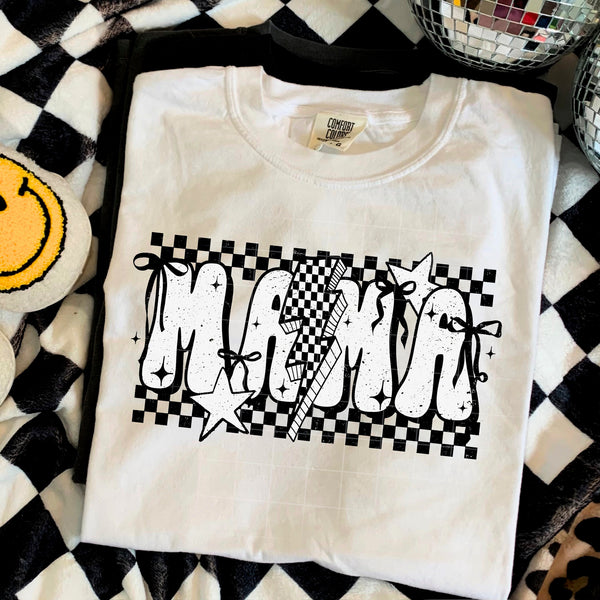 Mama BLACK AND WHITE with lightning bolt and bows (scarlow) 114362 DTF transfer