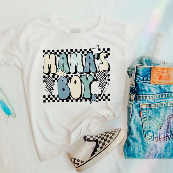 Mamas BOY BLACK AND WHITE with lightning bolt and bows (scarlow) 114324 DTF transfer