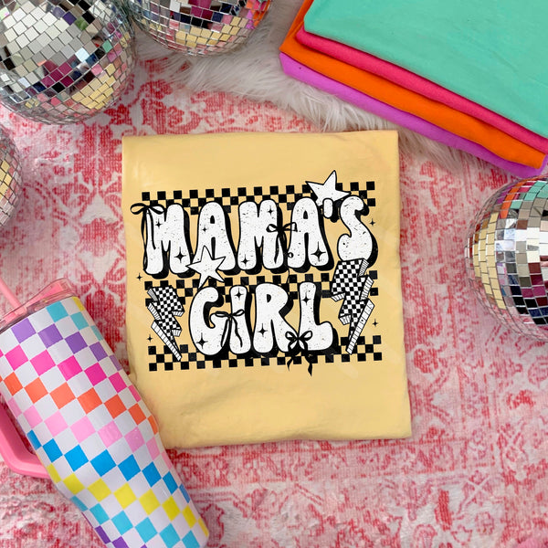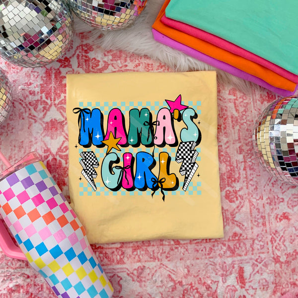 Mamas Girl PINK YELLOW BLUE with lightning bolt and bows (scarlow) 114323 DTF transfer