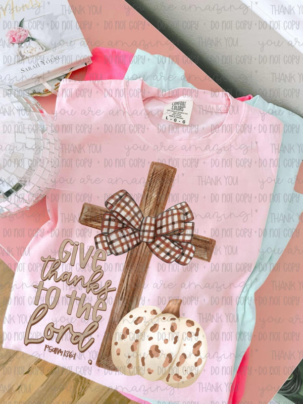 Give Thanks to the lord with cross and WHITE pumpkin DTF transfer
