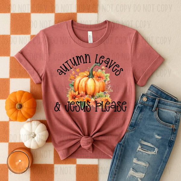 Autumn Leaves and Jesus Please pumpkins 113139 DTF transfer