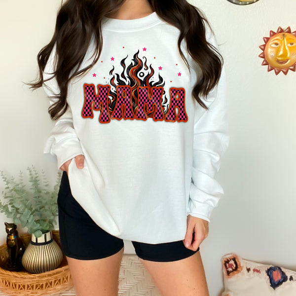 Mama white and black Checker with flames 110691 DTF transfer