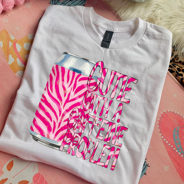 Cute with a caffeine problem pink zebra can 110567 DTF transfer