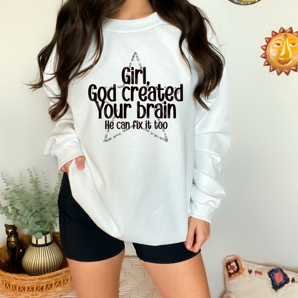 Girl god created your brain silver glitter star 110669 DTF transfer