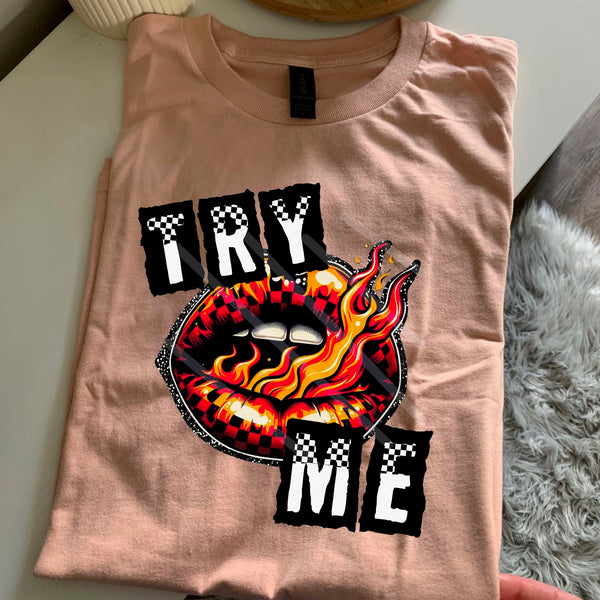 Try Me Checker Flame Lips 110708 DTF transfer