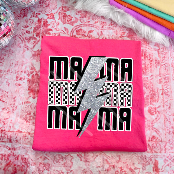 White Checker Mama Lightning Bolt 110694 DTF transfer