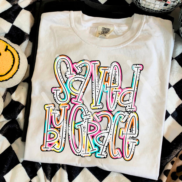 Saved By Grace (colorful Dalmatian font) 110659 DTF transfer