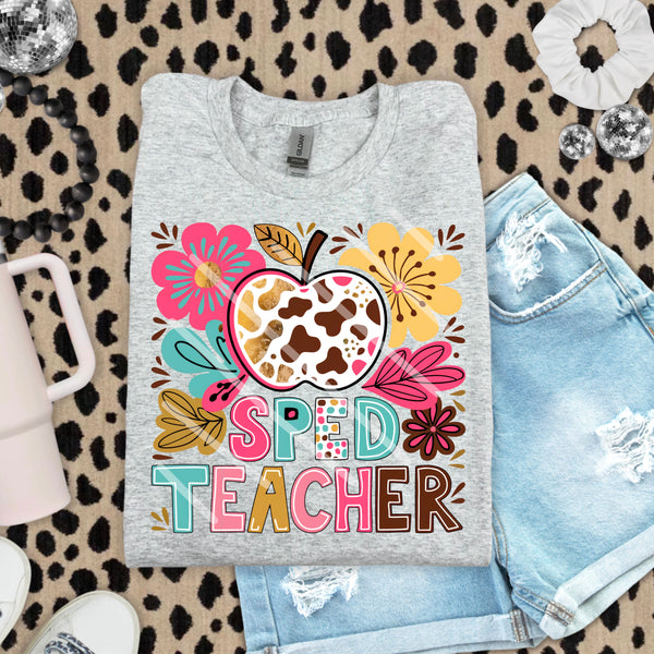 Sped Teacher Abstract Florals with Apple 110836 DTF Transfer