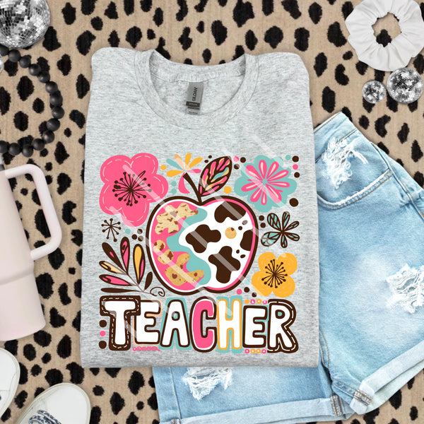 Teacher Abstract Florals with Apple 110835 DTF Transfer