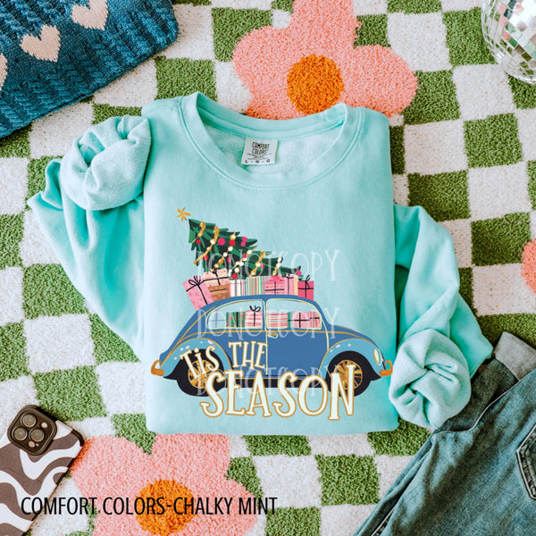 Tis The Season Blue Car & Tree CSG DTF transfer