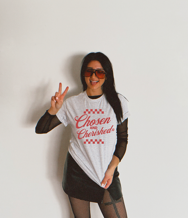 Chosen and Cherished Checker Red Font 110105 DTF transfer