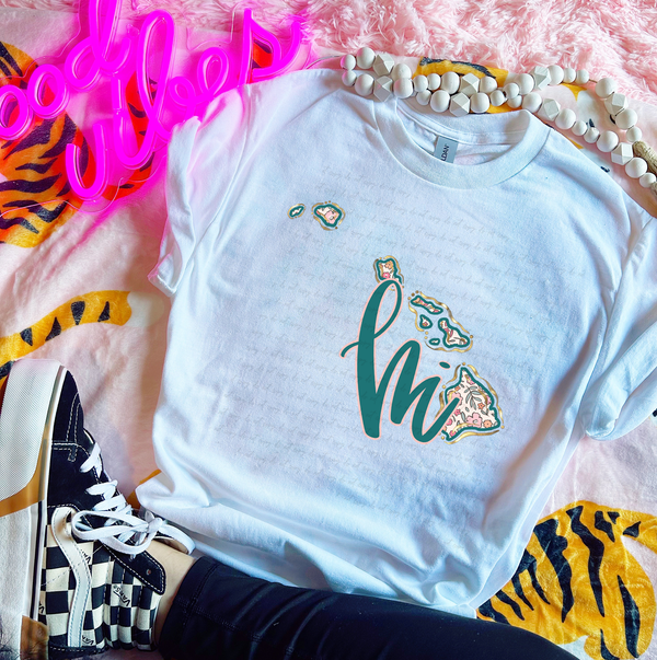 HI Hawaii Floral State Gold Outline 110119 DTF transfer