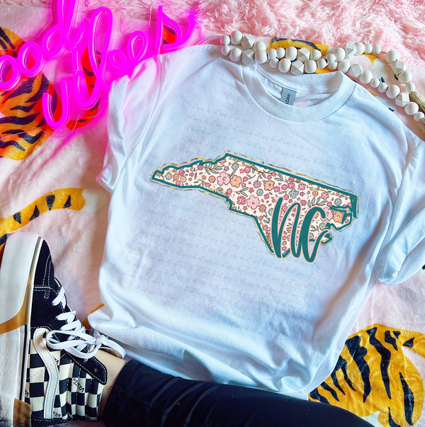 NC North Carolina Floral State Gold Outline 110072 DTF transfer