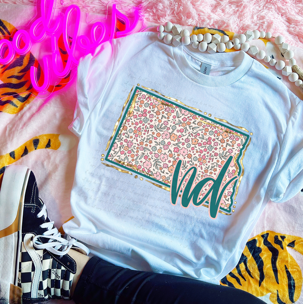 ND North Dakota Floral State Gold Outline 110073 DTF transfer