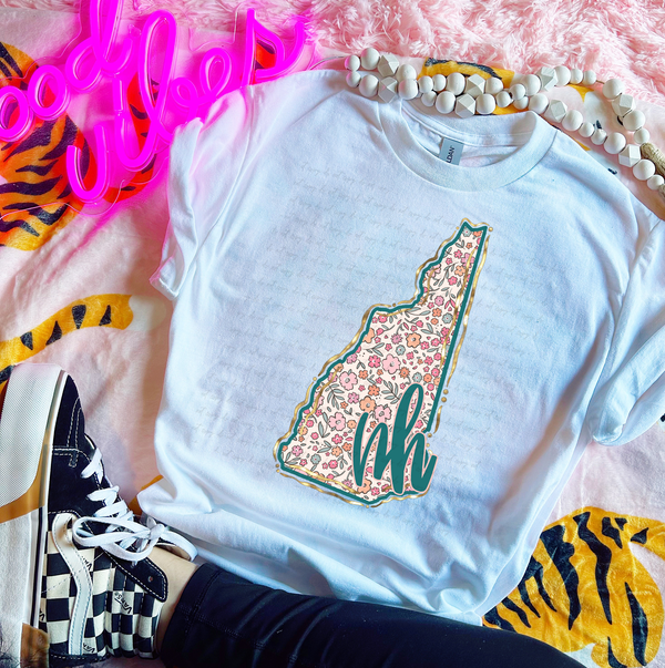 NH New Hampshire Floral State Gold Outline 110075 DTF transfer