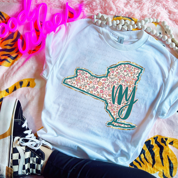 NY New York Floral State Gold Outline 110079 DTF transfer
