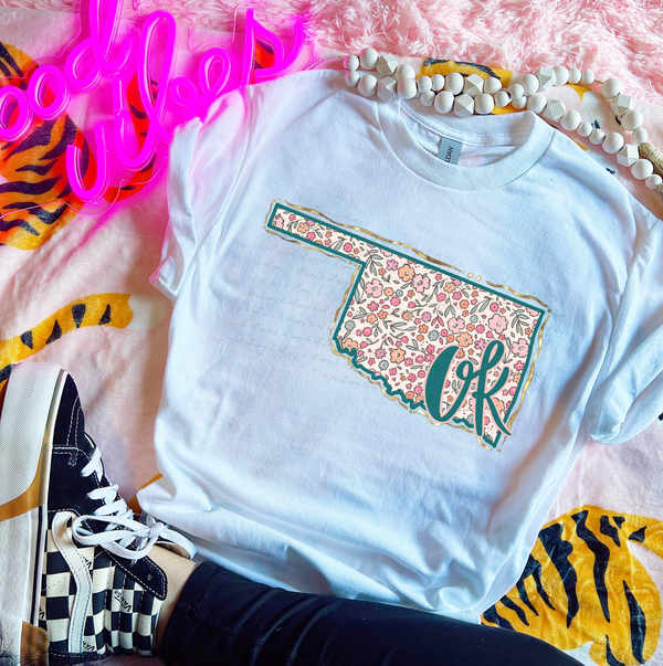 OK Oklahoma Floral State Gold Outline 110081 DTF transfer