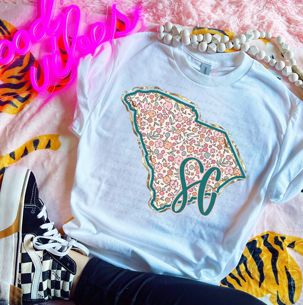 SC South Carolina Floral State Gold Outline 110085 DTF transfer