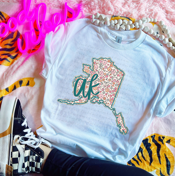 AK Alaska Floral State Gold Outline 110048 DTF transfer