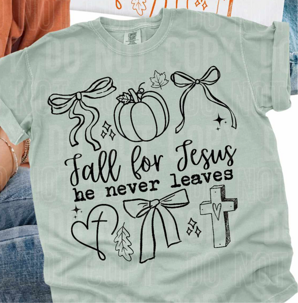 Fall for Jesus he never leaves BLACK (SBB) DTF transfer