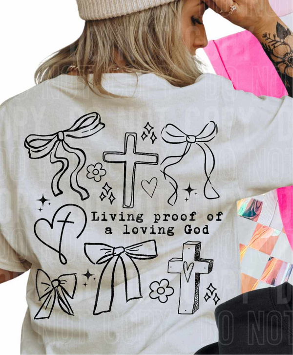 Living proof of a loving God WHITE (SBB) DTF transfer
