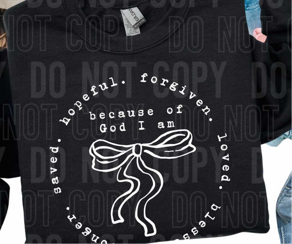 Stronger saved hopeful forgiven circle WHITE with bow (SBB) DTF transfer