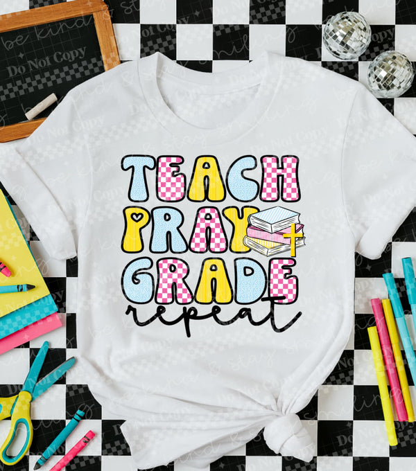 Teach Grade Pray Repeat DTF transfer