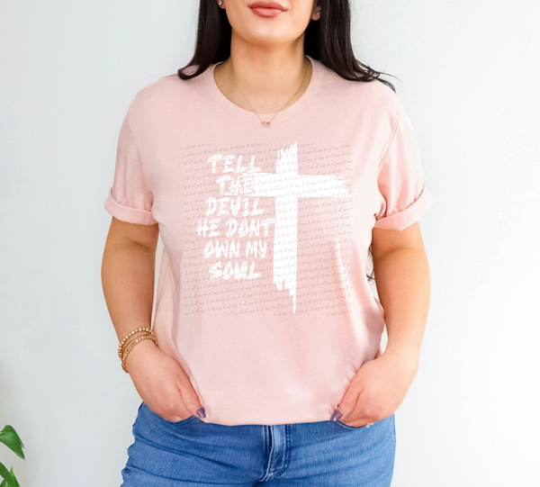 Tell The Devil He Don't Own My Soul Cross White 104867 DTF transfer