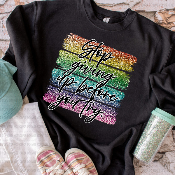 Stop giving up before you try rainbow (Revel) 107634 DTF transfer